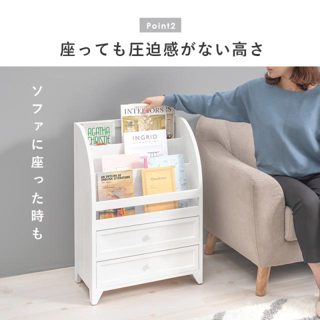 マガジンラック 木製 おしゃれ スリム 北欧 白 可愛い アンティーク 本棚 かわいい 収納 完成品 雑誌 絵本 引出し シャビー ディスプレイ マガジンラック 木製 おしゃれ スリム 北欧 白 可愛い