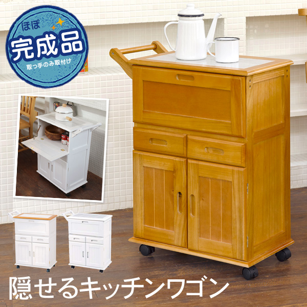 キッチンワゴン キャスター付き おしゃれ キッチン収納 カート ワゴン 木製 作業台 タイル付き カントリー調 ハンドル付き キッチンワゴン キッチンワゴン ワゴンカウンター ワゴン