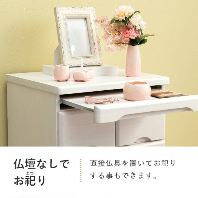 - 部屋の雰囲気に合わせて白を買いました。仏壇置きなのにかわいいです。 立ったまま拝めるのもいいです。