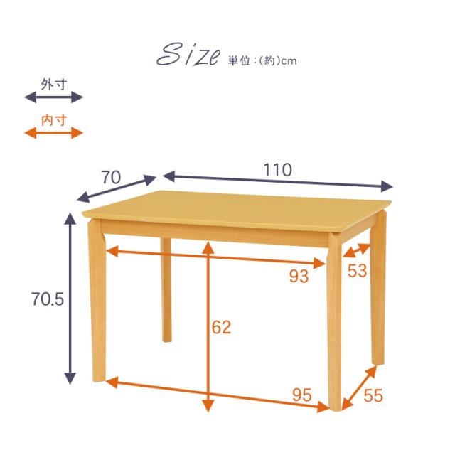 限られた空間でも使いやすい幅110cmのコンパクトダイニングテーブル。