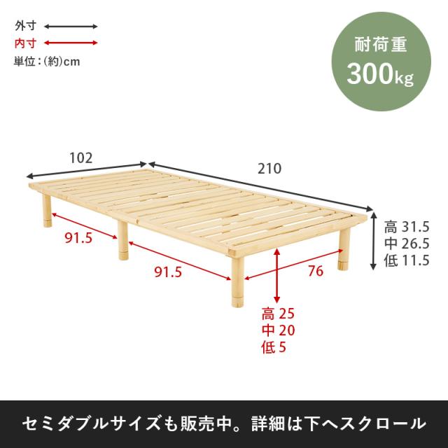 すのこベッド シングル 頑丈 耐荷重300kg 高さ調節 ベットフレーム シングルベッド 木製ベッド S ベッド シングル おしゃれ ナチュラル 木製