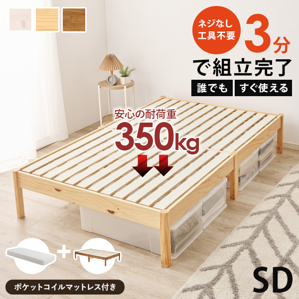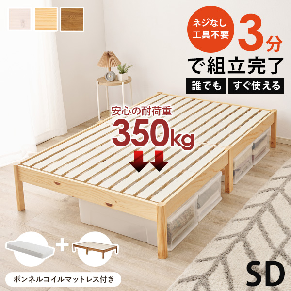 こちらのベッドは一人暮らしでも余裕をもって快適に睡眠できるセミダブルサイズ。