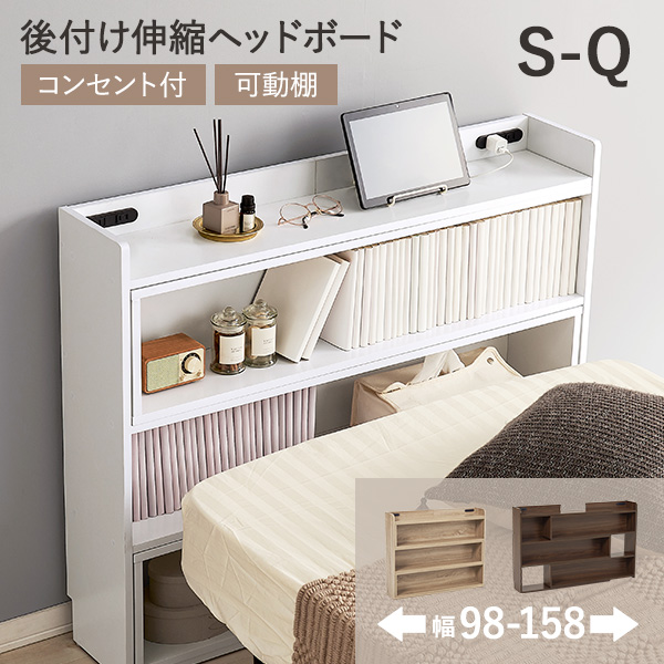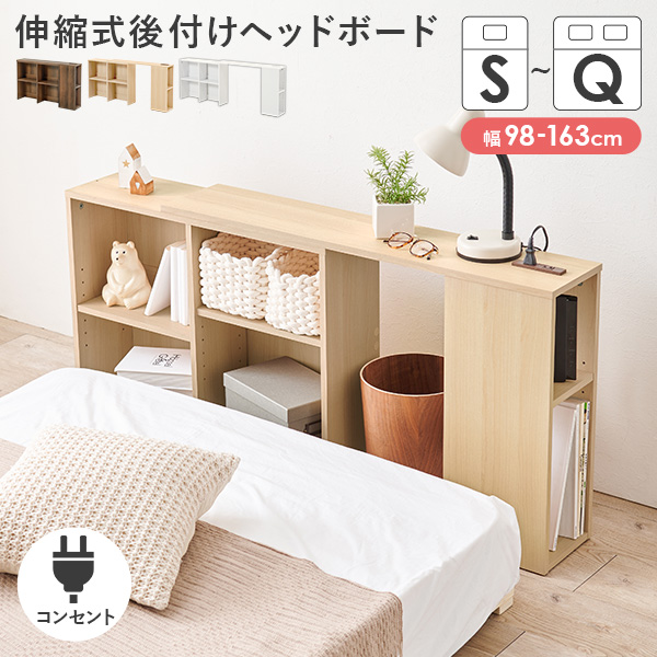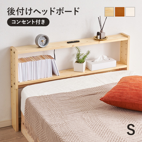 ヘッドボード 後付け コンセント 幅98 シングル ヘッドボードのみ 宮棚 単品 収納棚 スリム ラック 木製 おしゃれ 北欧 枕元 収納 棚 本棚 ベッド 小物置き棚 サイドボード 飾り棚 無垢 寝室 DIY