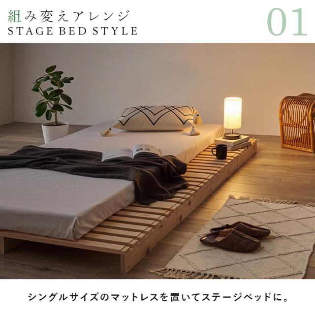ベッド ベッドフレーム セミダブル すのこ 収納 パレットベッド ステージベッド 分割式 木製 天然木 国産 ひのき 檜 軽量 すのこベッド ベット 連結 来客用 ベットフレーム パレット S SD ヒノキ
