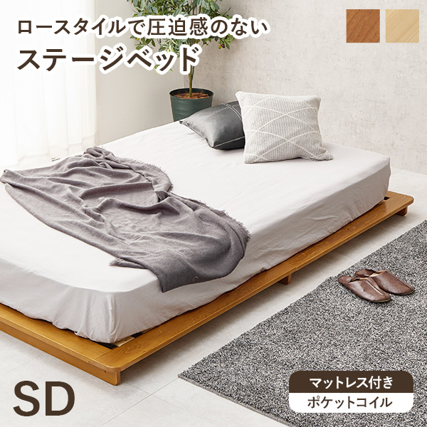 ベッド すのこ セミダブル ステージベッド セミダブルベッド ベット すのこベッド 天然木 ロータイプ ベッドフレーム 木製 ナチュラル ブラウン ベットフレーム 一人暮らし ローベッド セミダブルベット