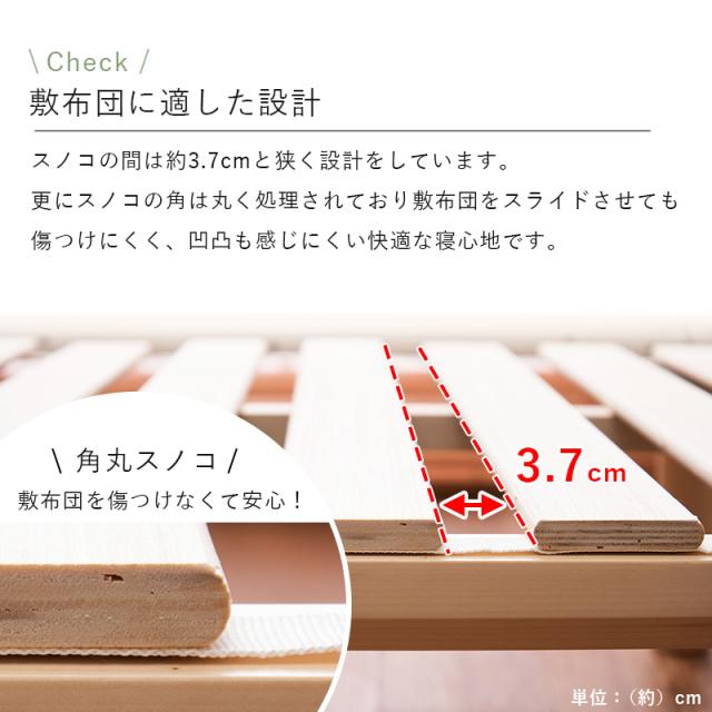 お手元の敷布団がそのまま使える、敷き布団対応のすのこベッド。