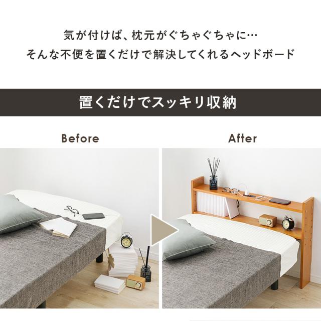 後付けヘッドボード ベッド コンセント付き シングル サイドボード ベット 収納 木製 可動棚 テーブル コンパクト スリム 一人暮らし インテリア おしゃれ 後付けヘッドボード コンセント付き シングル 高さ調節