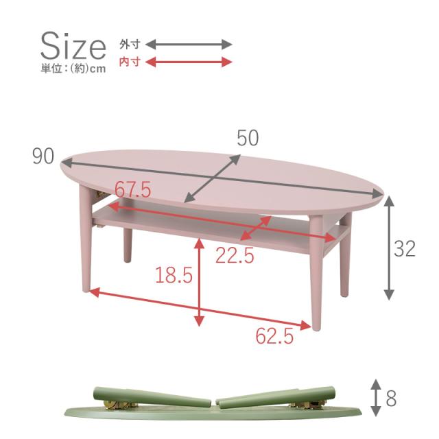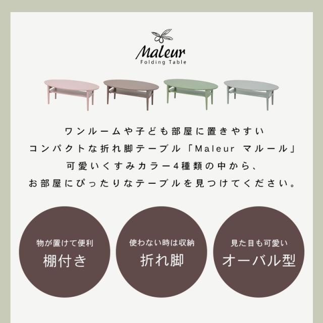 テーブル 折りたたみ おしゃれ ローテーブル サイドテーブル コンパクト センターテーブル 在宅ワーク 北欧 くすみカラー 楕円 丸 マルール ローテーブル 折りたたみテーブル センターテーブル 楕円