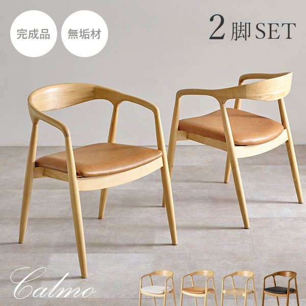 ダイニングチェア 2脚 ダイニング チェア ダイニングチェアー 肘 椅子 おしゃれ 完成品 木製椅子 チェアー クッション 食卓椅子 2脚セット ラウンド カルモ 北欧風 ナチュラル 肘つき 組立不要 天然木 アッシュ材 肘掛け