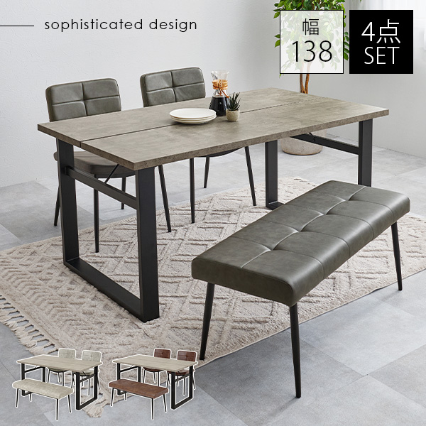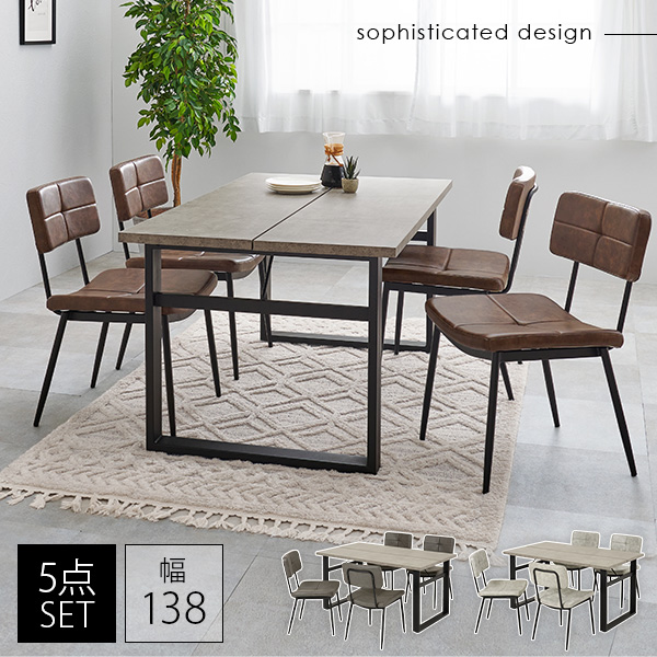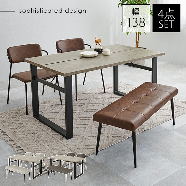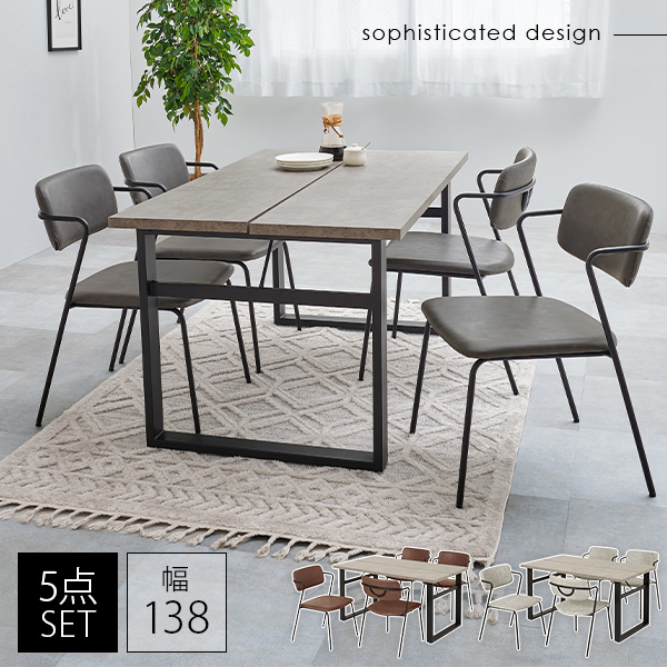 ダイニングセット 4人 4点 北欧 おしゃれ 食卓テーブル 椅子 チェア テーブル 合成皮革 レザー調 ヴィンテージ風 食卓椅子 モダン Z型フレーム コンクリート調 かっこいい スタイリッシュ ビンテージ