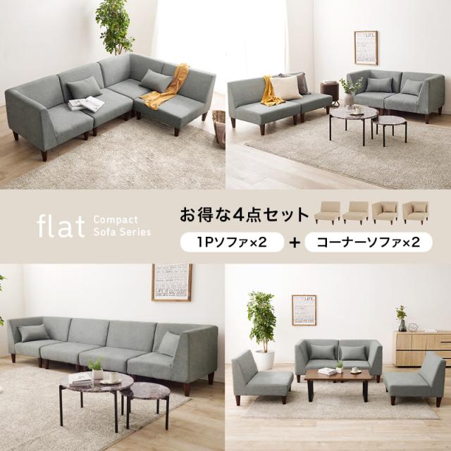 ユニットソファ カウチソファー 3人掛け ソファ 4人掛け ソファー 3人用 北欧 おしゃれ L字ソファ 足置き ローソファ 三人掛けソファ 連結ソファ 4点 フラット ベージュ グレー 3P 4P 天然木 低め ユニットソファー セット