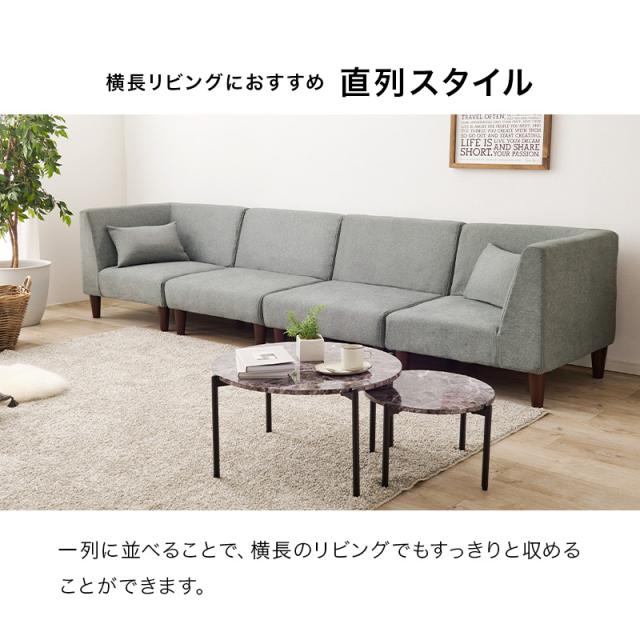 一人掛けソファ2個・コーナーソファ2個の4点セットで、組み替えて使えるユニットソファ。