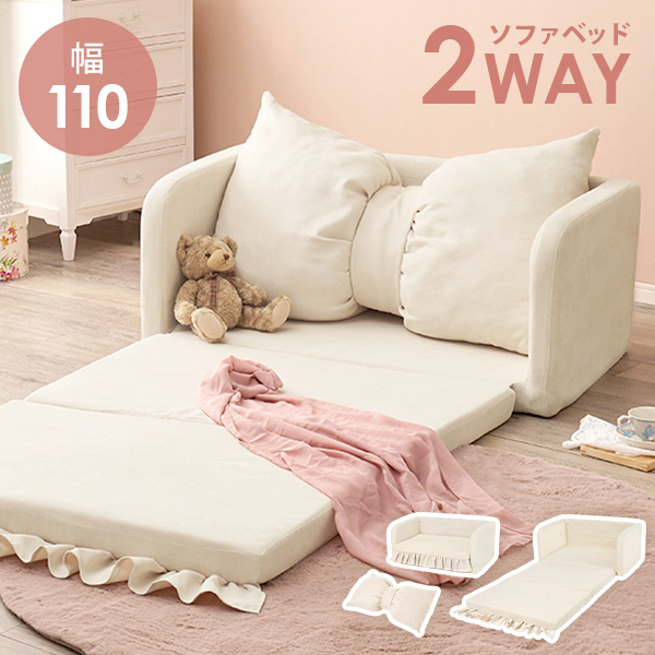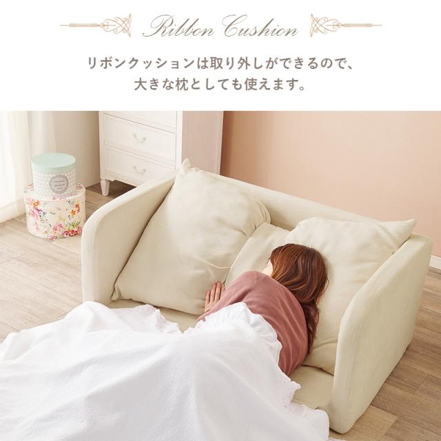 ソファ 2人掛け ソファーベッド おしゃれ ソファベッド コンパクト 完成品 ソファ ベッド ソファー ベット リボン 可愛い かわいい クッション付 ソファー りぼん クッション 完成品 クッション付き フラン