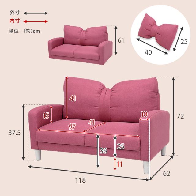 ソファ ソファー ローソファー ローソファ 2人掛け おしゃれ 安い コンパクト かわいい 姫系 ピンク 姫系家具 白 ホワイト 可愛い リボン ソファー ソファー ソファ 2人掛け 二人掛けソファ
