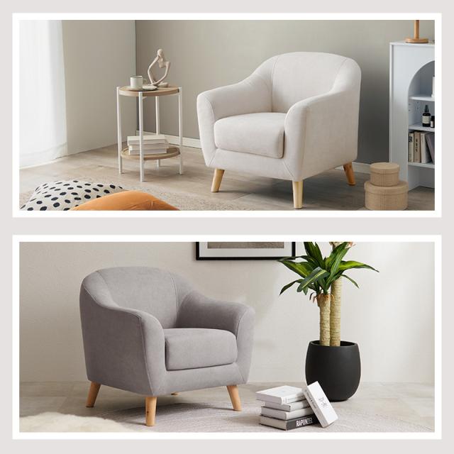 大人可愛いカラーにコロンとしたモダンなフォルムがおしゃれな1人掛けソファ。