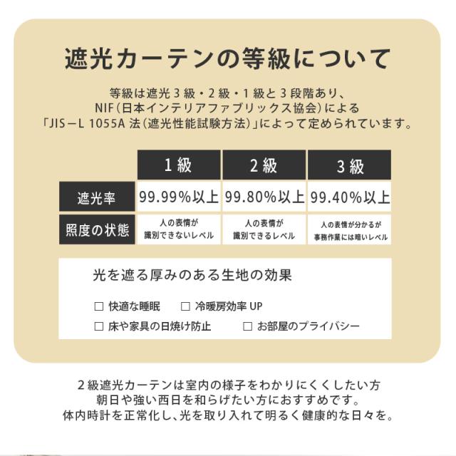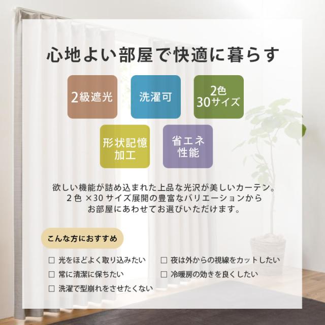 【機能】2級遮光・形状記憶加工・昼見えにくい・洗濯機OK