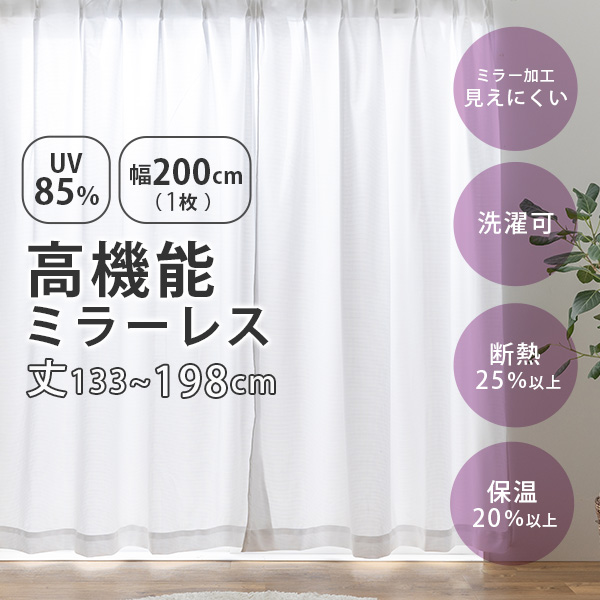 UVカット ミラーレス レースカーテン 幅200cm(1枚組)丈133〜198cm UVカット率85%以上 断熱 保温 シンプル ウォッシャブル 洗濯 既製 おしゃれ 新生活 ソピア UVカット レースカーテン 断熱 保温 ウォッシャブル 洗濯 ミラー