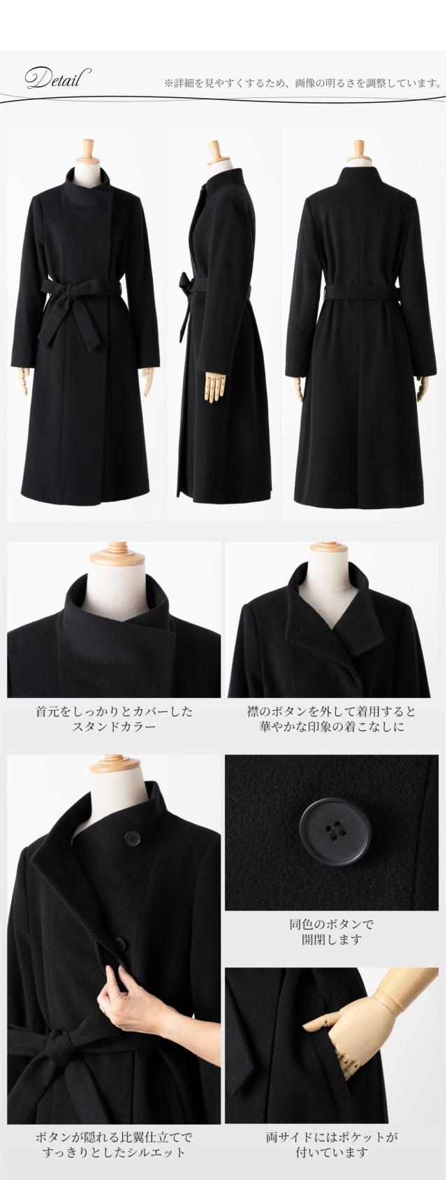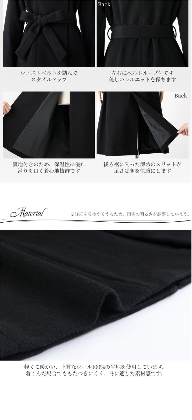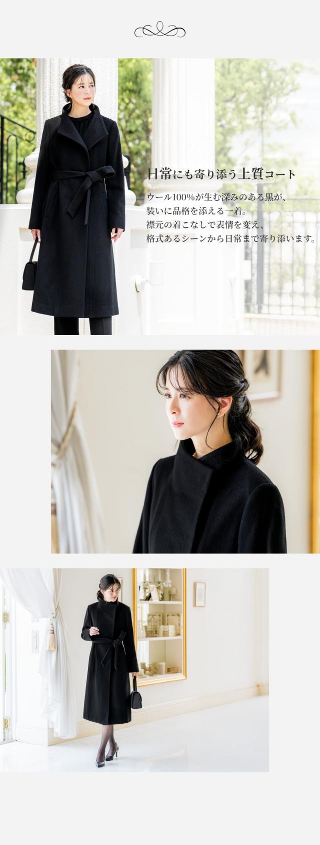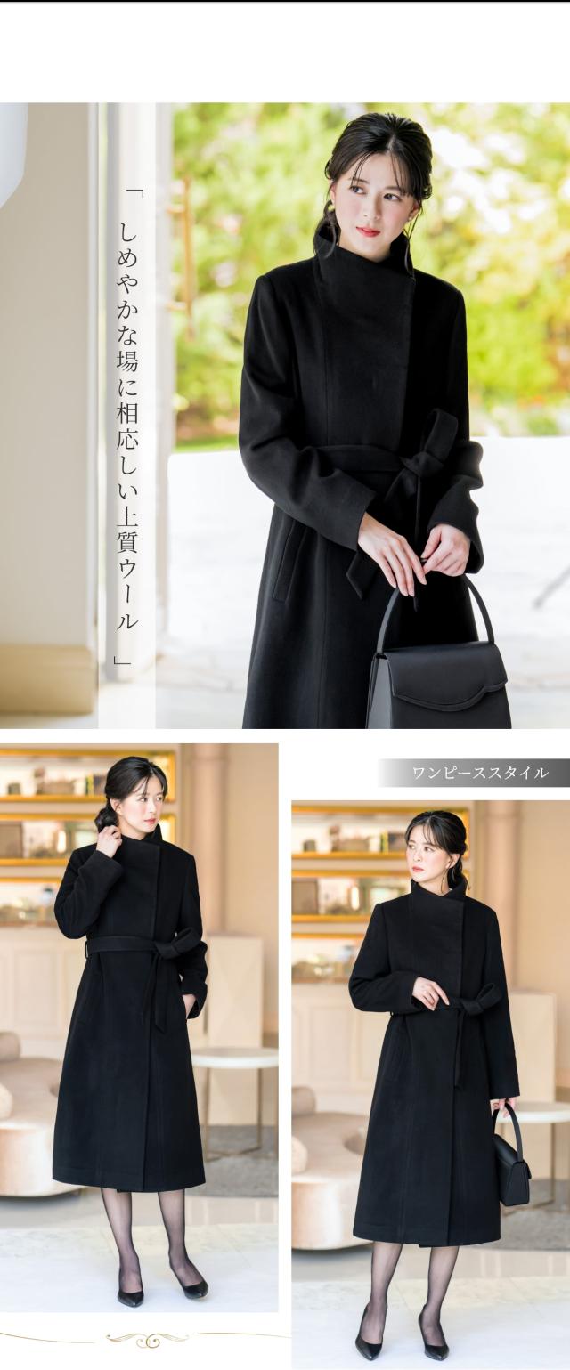 ウール 100% コート レディース スタンドカラー 比翼 アウター 冬 秋 ブラックフォーマル 葬式 黒 女性 お通夜 礼服 法事 法要 冠婚葬祭 弔事 通勤 入学式 卒業式 セレモニー ビジネス 上品 大きいサイズ