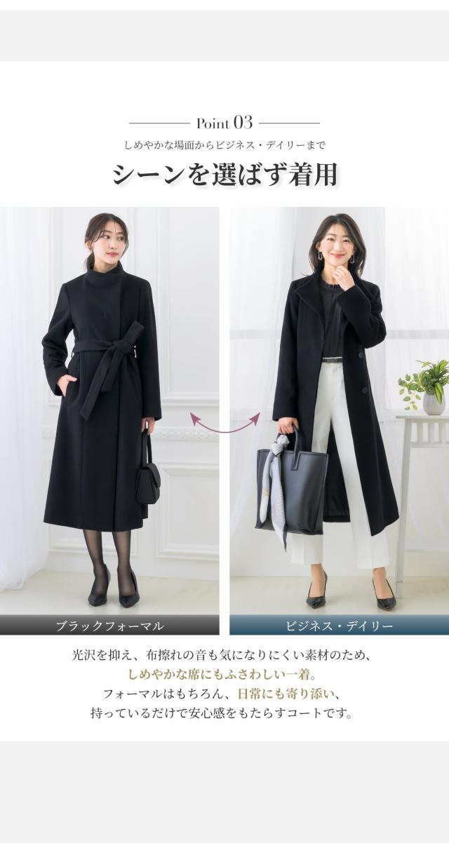 秋冬におすすめのブラックフォーマル対応コートです。
