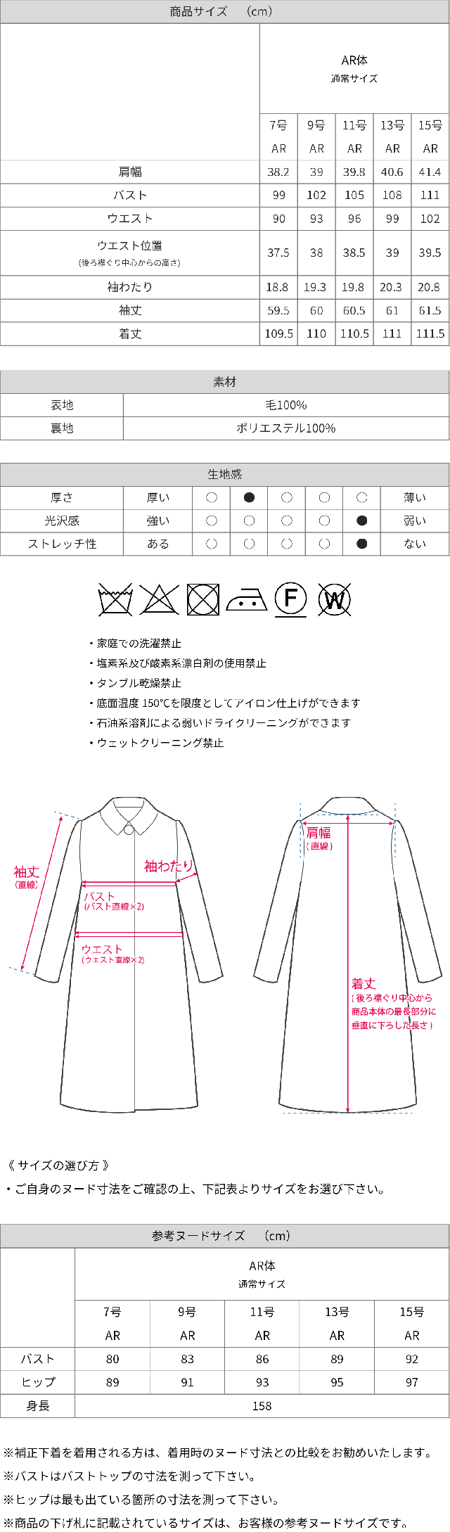 | 表地:ウール(毛) 100% 裏地:ポリエステル 100% | |
