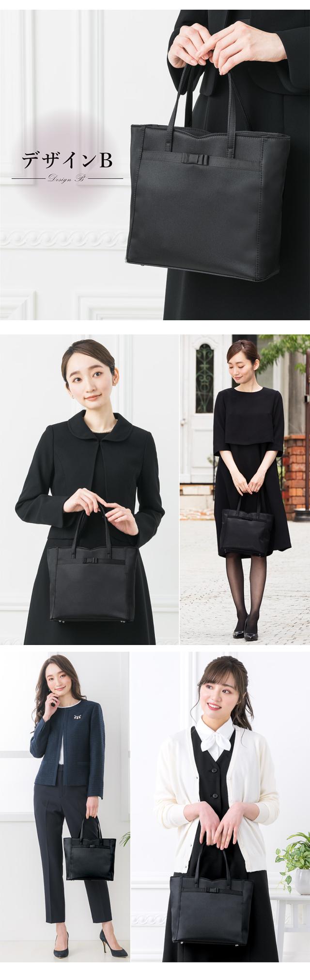 | 慶弔用にはもちろん、入学式・卒業式などお祝いのシーンや華やかなパーティスタイルにも対応可能なソフトタイプの万能フォーマルバッグ。 デザインAは丸みを帯びた女性らしいデザインが特徴です。 デザインBはシンプルなスクエアタイプで幅広い世代の方にお持ち頂けます。 どちらのデザインもリボンをあしらった女性らしく大人かわいいデザインが印象的。収納力が高く、長財布やペットボトル等もしっかりと収まるサイズ感なのでフォーマルシーン以外にもちょっとしたランチやお仕事バッグとしてもしっかり活用できるのも嬉しいポイントです。 シンプルでいて軽くて持ちやすい、実用性の高いアイテムです。 | |