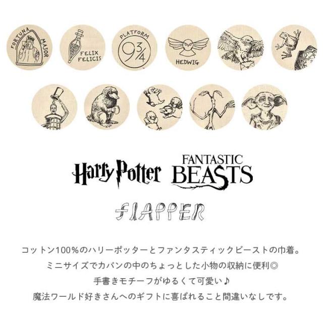 コットン100%のハリーポッターとファンタスティックビーストの巾着。 ミニサイズでカバンの中のちょっとした小物の収納に便利◎ 手書きモチーフがゆるくて可愛い♪ 魔法ワールド好きさんへのギフトに喜ばれること間違いなしです。
