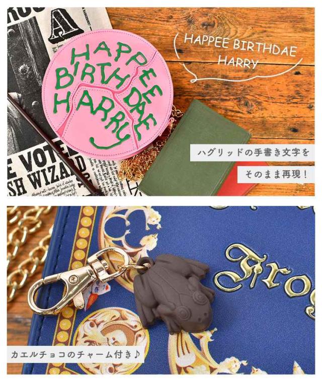 インパクト抜群!ハグリッドがハリーにプレゼントしたバースデーケーキと、カエルチョコレートのパッケージがそのまま可愛いポシェットになりました。 しっかりした合皮とゴールドのチェーンで高級感があり、テーマパークに遊びに行くときのコーデにもぴったり。 オリジナルのラッピング袋付きで、プレゼントにもオススメです!