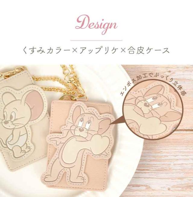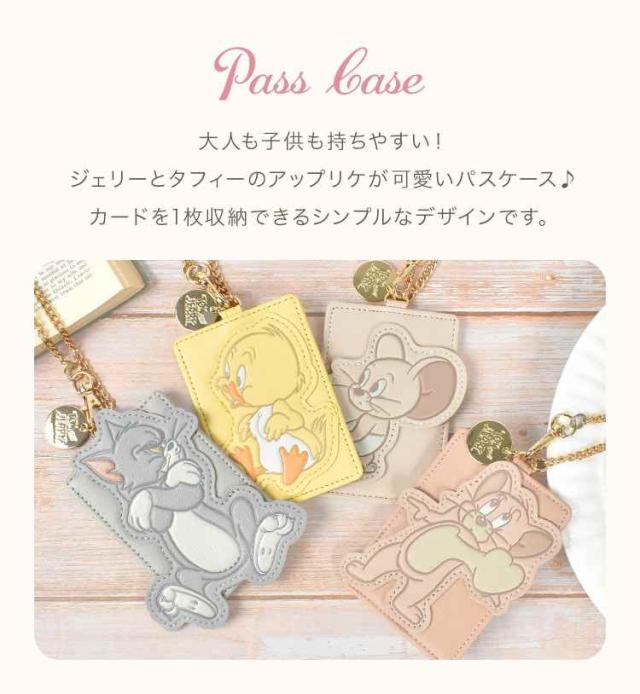 パスケース 定期入れ トムとジェリー 可愛い おしゃれ レディース 女子 高校生 大人かわいい 定期券入れ キャラクター ICカード ケース チェーン付き 窓付き 薄型 アイボリー ピンク グレー イエロー suica 通勤 通学 大人 子供 中学生 大学生 社会人 女性 トムジェリ グッズ