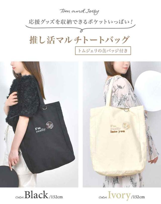 推し活 トートバッグ うちわが入る 多収納 マチ広 トムとジェリー バッグ レディース 肩掛け A4 B4 大容量 ポケット多め 軽い おしゃれ かわいい シンプル アイボリー ブラック 黒 キャンバス 帆布 コンサート ライブ参戦 遠征 現場 オタ活 普段使い 通勤 通学 女子 女性