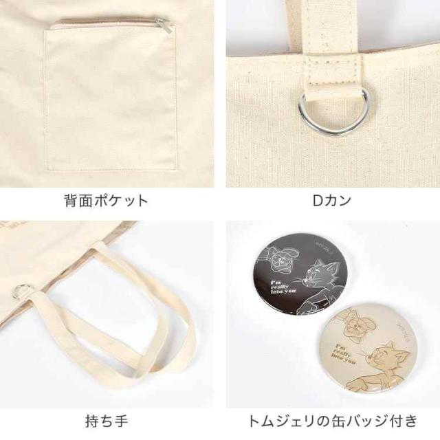 推し活や普段使いにぴったりのトートバッグ。うちわやペンライトなどを入れられる内ポケットや、背面ポケットもあって、推し活グッズが整理しやすい◎バッグの口はマグネットで開閉できます。トムとジェリーの缶バッジ付き。