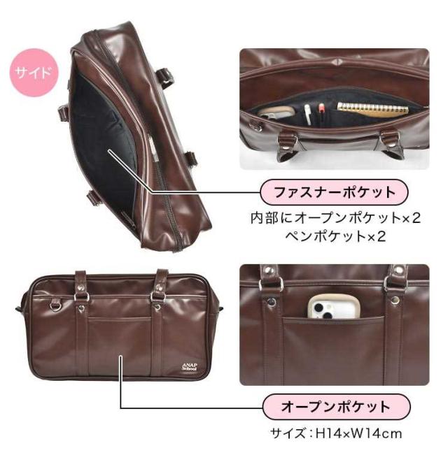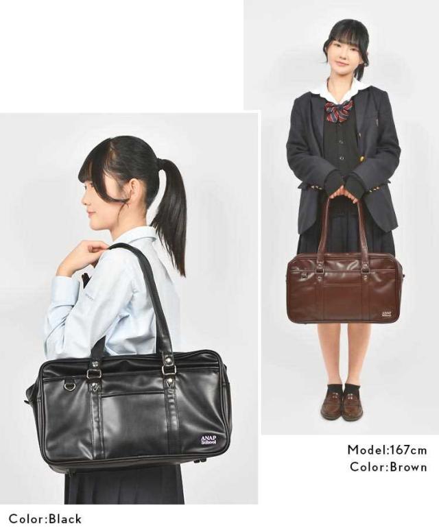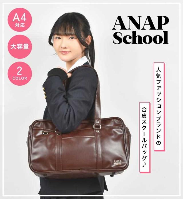 スクールバッグ 合皮 高校生 スクバ ANAP アナップ ブラウン ブラック 茶 黒 通学カバン バッグ 鞄 女子高生 JK 中学生 レディース ブランド 大容量 A4 かわいい おしゃれ シンプル サブバッグ ボストンバッグ スクールバック 持ち手長め ポケット 収納 多機能 手提げ 肩掛け