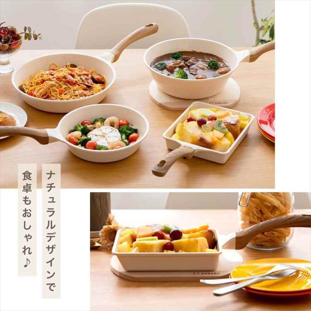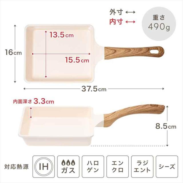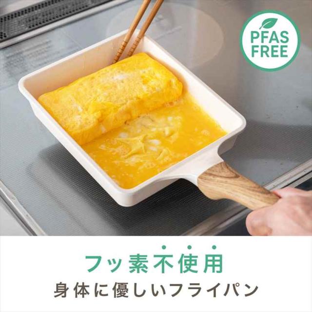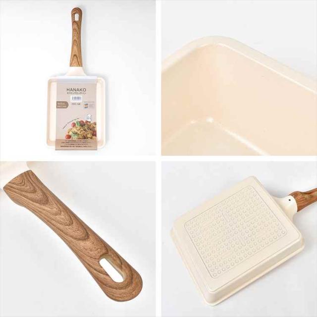 卵焼き フライパン ih セラミック 卵焼き器 HANAKO ハナコ IH対応 卵焼き機 15×18cm HAS-16E おしゃれ かわいい 白 ホワイト くっつかない こびりつかない エッグパン ガス 軽量 有害物質 含まない フッ素 不使用 PFAS フリー ナチュラル 木目調 調理器具 キッチン グッズ
