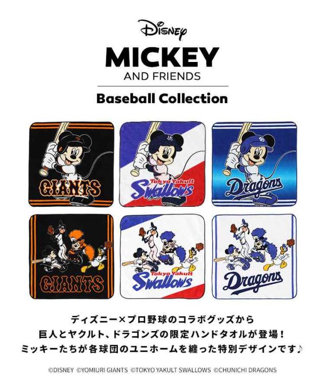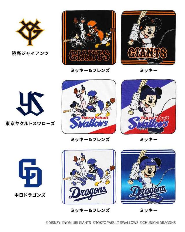 ディズニー×プロ野球のコラボグッズから巨人とヤクルト、ドラゴンズの限定ハンドタオルが登場!ミッキー&フレンズの仲間たちが各球団のユニホームを纏った特別デザインです♪