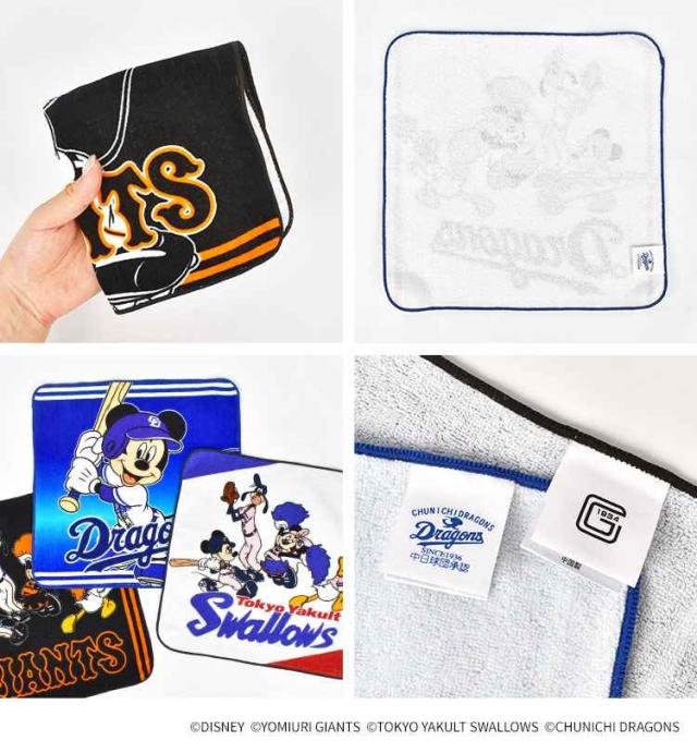 ハンカチ 公式 Disney&Baseball ディズニー 日本プロ野球 ミッキーフレンズ タオルハンカチ 大きめ コラボ グッズ ミッキー ミニー ドナルド グーフィー 読売ジャイアンツ 東京ヤクルトスワローズ 中日ドラゴンズ YG YS CD ハンドタオル 綿100% かわいい ギフト プレゼント