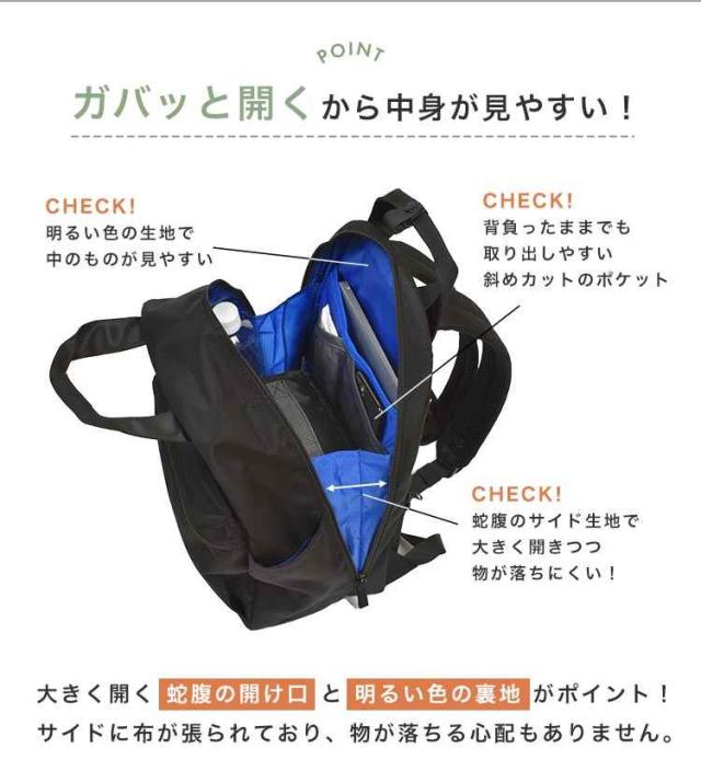 アクティブな雰囲気の光沢ポリエステル生地と、ラゲッジタグ型のネームが特徴のTAG(タグ)シリーズから、日常でも旅行でも使いやすい機能を多数備えた大容量のハンドル付きデイパックが登場。蛇腹で大きく開くので、ぱっと中身が見やすく荷物の出し入れがしやすい仕様です◎内側背面は大きいPCポケット+小さい斜めポケット+下部のポケットでウォールポケットのように仕分けて収納でき、斜めに手を入れた時も取り出しやすくなっています。急な雨や汚れに強い両面撥水生地仕様、便利なキャリーオンテープやセキュリティポケット付きです。