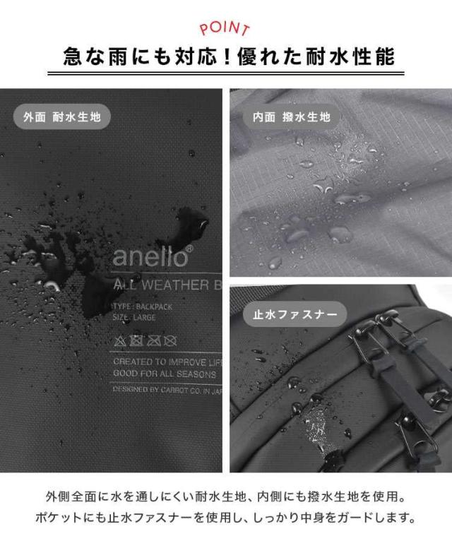 リュック 防水 anello アネロ メンズ レディース 通学 大容量 通勤 大人 男子 女子 大学生 高校生 旅行 アウトドア 撥水 止水ファスナー 18L 1泊 ブランド リュックサック バックパック 多機能 A4 パソコン PC 収納 ポケット 多い キャリーオン 黒 ブラック グレー ネイビー