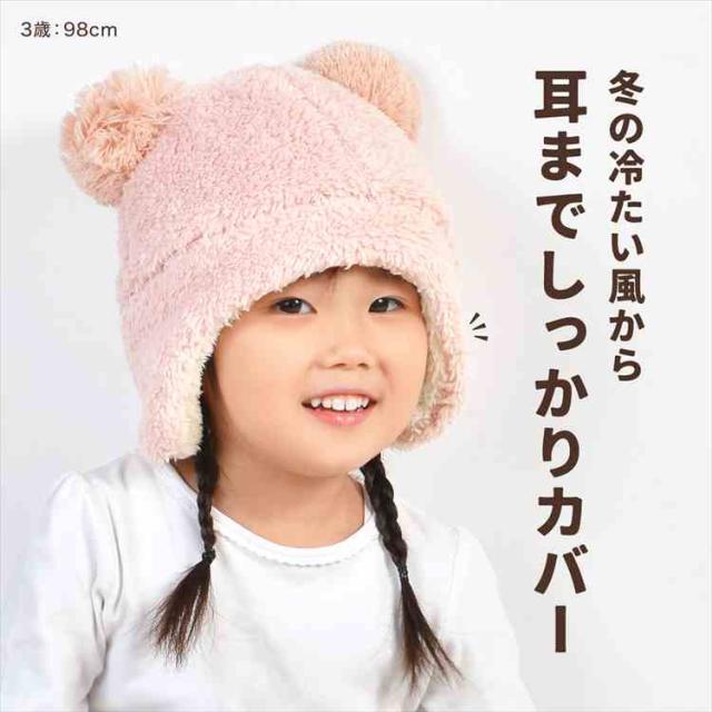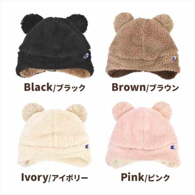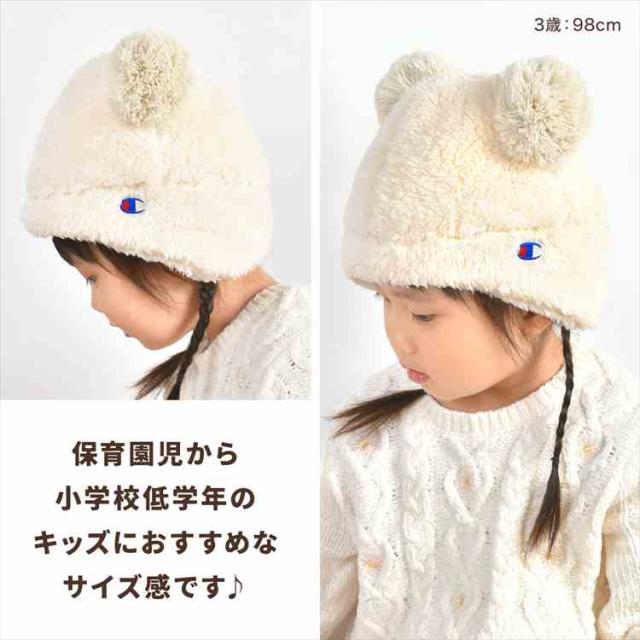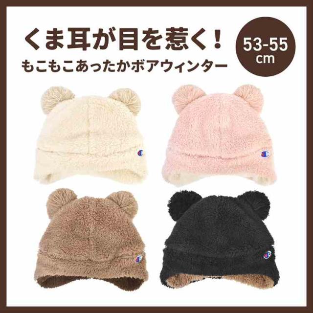 キッズ ニット帽 耳あて チャンピオン champion ポンポン ボア 耳当て くま耳 かわいい ブラウン ブラック アイボリー ピンク 53 54 55 cm 耳まで隠れる 子供 子ども おしゃれ 通園 通学 クリスマス ギフト 誕生日 プレゼント 園児 小学生 防寒 ぼうし 女の子 男の子 黒 白
