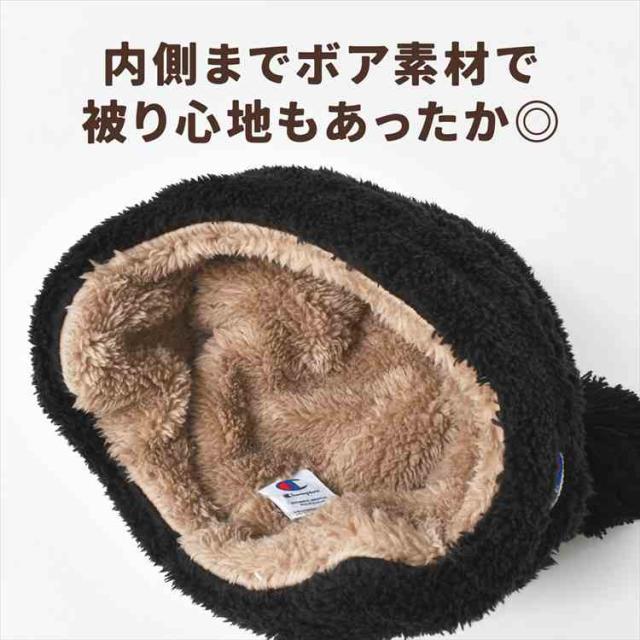 ポンポンがくまのお耳みたいに見えるchampionのキッズボアウィンター。毛足の長いふわふわしたボア生地で被り心地も見た目もあたたか♪耳当て付きで真冬の通園通学やおでかけにもぴったり!保育園児から小学校低学年におすすめです♪