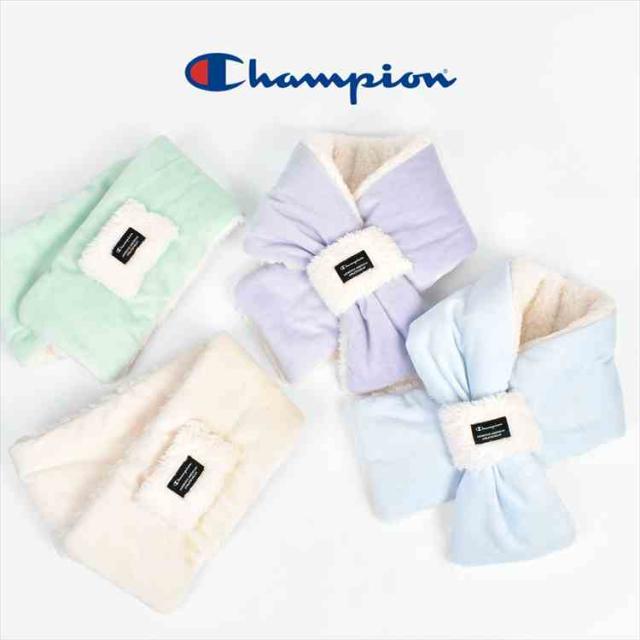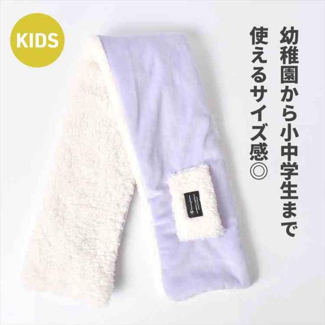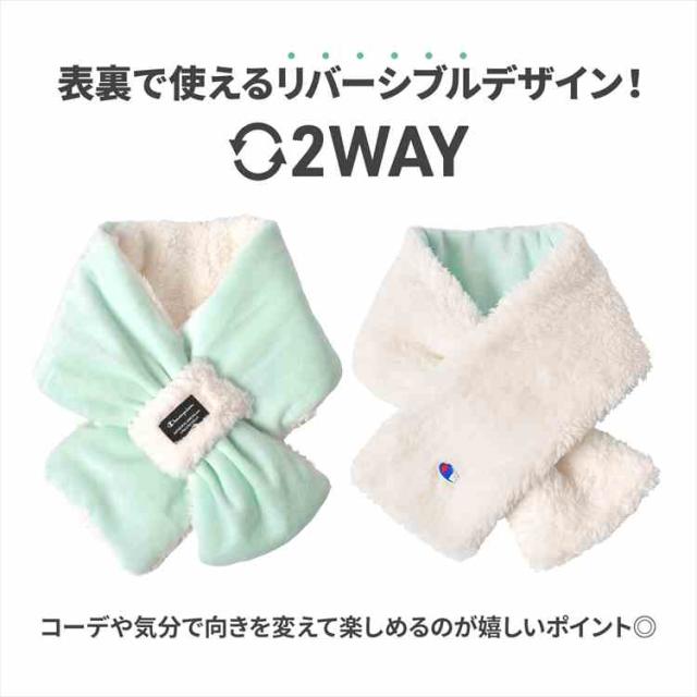 マフラー キッズ champion チャンピオン 差し込みマフラー 女の子 男の子 ベロア フリース ボア リバーシブル 2way おしゃれ かわいい 764-0015 小学生 低学年 高学年 保育園 幼稚園 中学生 ネックウォーマー アイボリー パープル ミント 水色 通学 通園 プレゼント ギフト