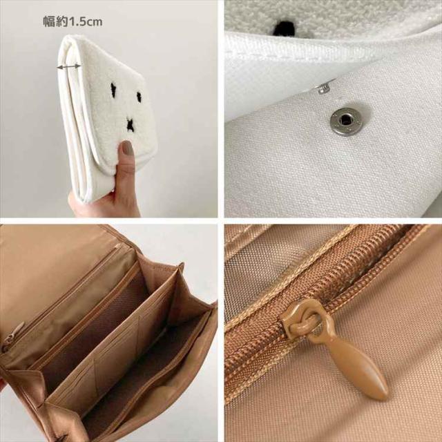 Dick Brunaの絵本に登場するミッフィーとボリスが、もこもこの「サガラ刺繍」で表現されたマルチケース。大きく開いて中の物を出し入れしやすいジャバラ仕様になっています。診察券や保険証などのカードを12枚収納できる仕切りポケットや、ファスナー付きポケットが備わっています。お薬手帳や母子手帳を入れてホスピタルポーチや、パスポートを入れてトラベルポーチなど多用途にお使いいただけます。