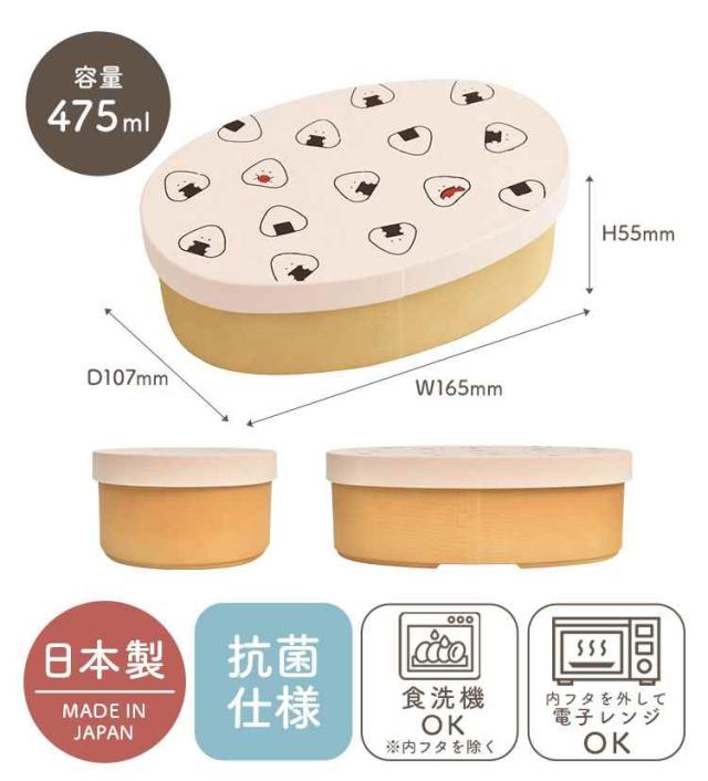 お弁当箱 おにぎりさん 曲げわっぱ 風 弁当箱 一段 レンジ対応 食洗機対応 日本製 おしゃれ かわいい キャラクター グッズ 小判型弁当箱 わっぱ風 プラスチック 丸型 ランチボックス 木目 和風 弁当 400ml 500ml 抗菌 大人 女性 子供 小学生 中学生 高校生 通学 通勤 遠足
