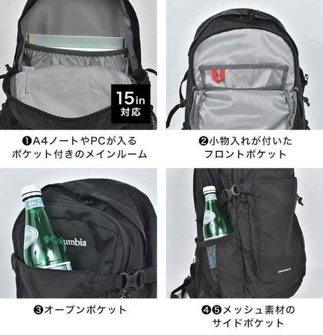 Columbia コロンビア リュック PU8662 レディース メンズ キャッスルロック 25L 大容量 バックパック リュックサック 撥水 軽量 丈夫 登山 ハイキング アウトドア レインカバー付き 通勤 通学 大人 高校生 中学生 おしゃれ 黒 ブラック 白 ホワイト ネイビー 紺 ブルー 花柄