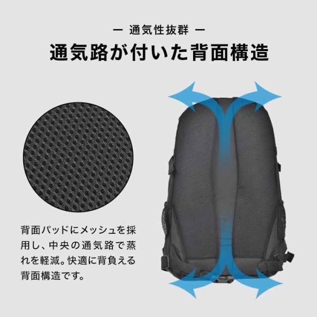 雨の日も安心の、レインカバー付きバックパック。背面は中央に通気路を設けた通気性の良い背面構造で、蒸れを軽減し快適に背負う事ができます。男女問わず使いやすいサイズ感で登山やハイキングのビギナーにも◎メインルームはA4サイズを折らずに収納でき、通勤や通学、普段用にもオススメのバックパックです。