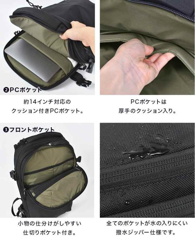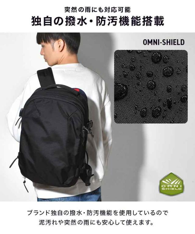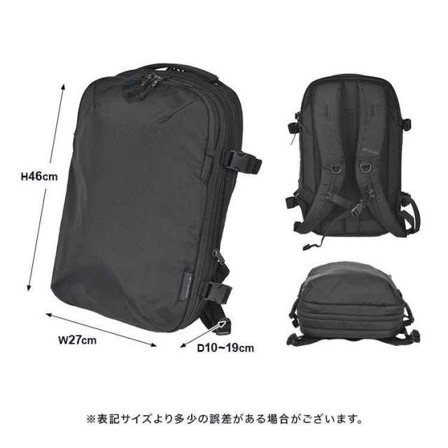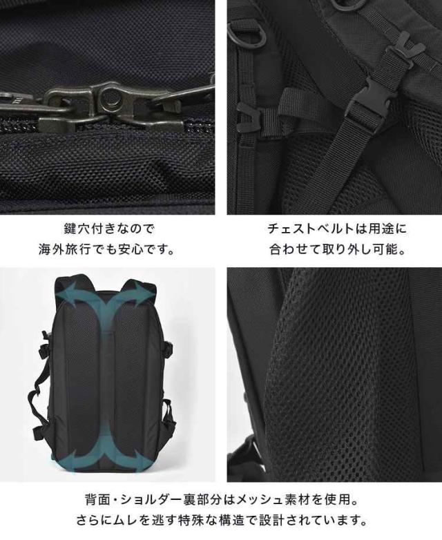 シンプルながら高い機能性を備える旅行用バックパック。荷物の量に合わせてメインルームの容量を調節できる拡張機能付きで、出先で荷物が増えても安心。生地には撥水機能付きなので突然の雨にも対応します。クッション性のあるPCポケット付きで、ビジネス用にも◎