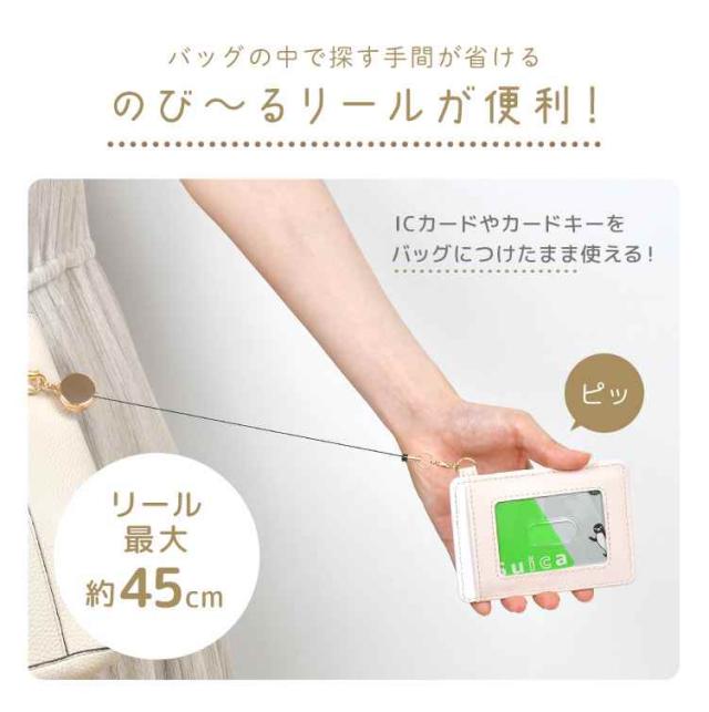 落ち着いたカラーで大人から子供まで使いやすいシンプルなデザイン♪背面は通勤通学に便利なICカード入れになっています。伸びるリール付きで、改札でのタッチもスムーズ◎ちょっとしたプレゼントやギフトにもおすすめです。