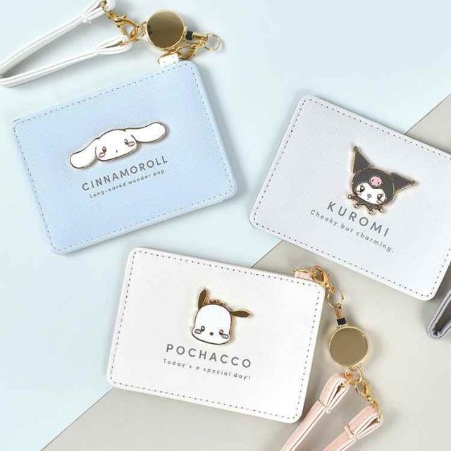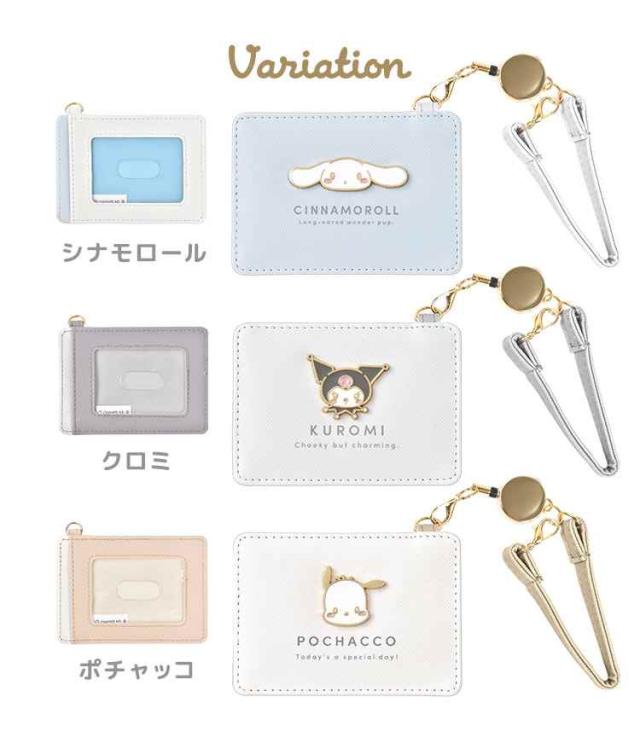 パスケース 定期入れ リール付き サンリオ キャラクター かわいい 子供 女の子 レディース ICカード 女子 高校生 ストラップ 紛失防止 窓付き おしゃれ シンプル シナモン クロミ ポチャッコ シナモロール 小学生 中学生 女性 大人 定期券入れ 通勤 通学 ベージュ グレー