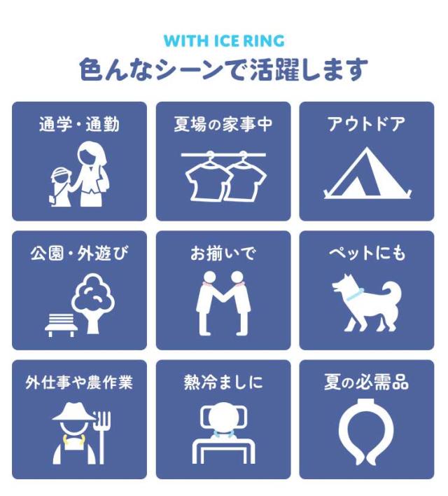 通勤通学や外での家事、農作業やピクニック、アウトドア時などなど使えるシーンがいっぱいの繰り返し使えるアイスリング L!