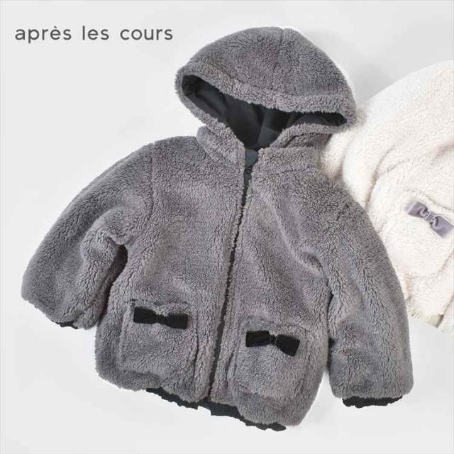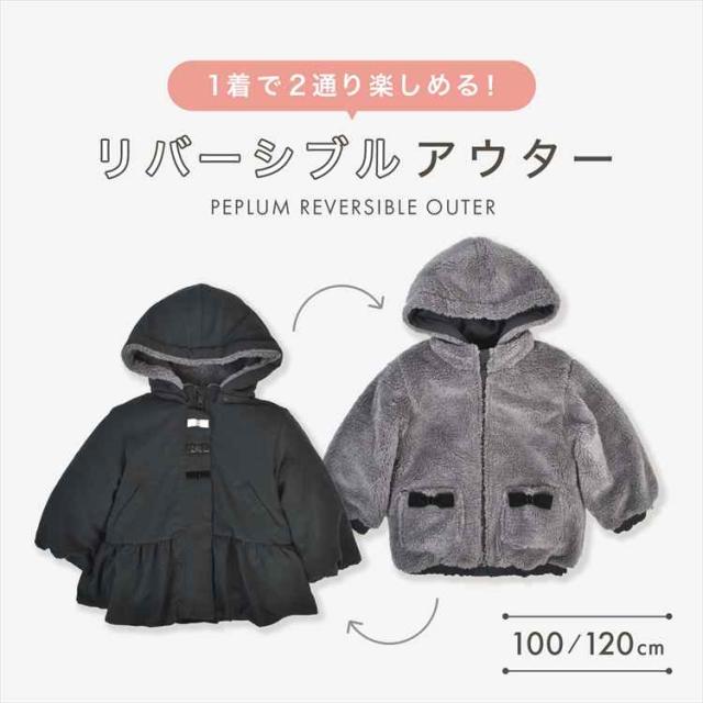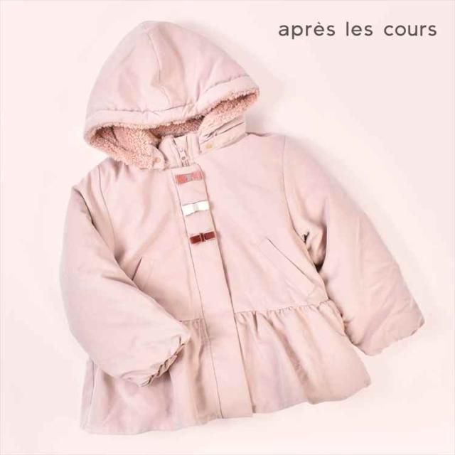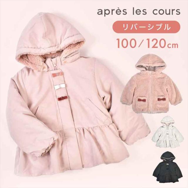 アウター 女の子 アプレレクール apres les cours ジャケット キッズ 子供 ペプラム リバーシブルアウター S501015 100cm 120cm ブルゾン ダウン コート 冬 防寒 ボア 中綿 フリル フード 取り外し かわいい おしゃれ ナチュラル FO エフオー 黒 白 ピンク ブラック ホワイト
