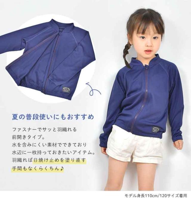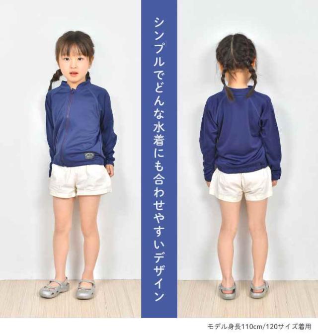 ラッシュガード キッズ ampersand アンパサンド 男の子 女の子 水着 小学生 男子 フードなし 長袖 120 130 140cm ジッパー ジュニア 子ども UVカット 日焼け対策 紫外線対策 前開き ファスナー プール スイミング 海 水泳 低学年 高学年 スイムウェア トップス 無地 シンプル
