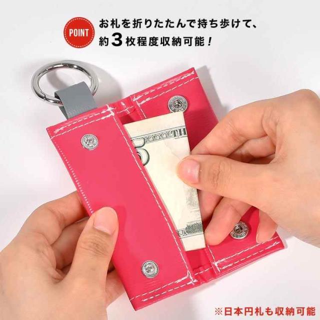 お金を念の為に持ち歩きたい方にオススメ!キーホルダーのようなコンパクトサイズのミニウォレット。バッグやベルトホルダーにぶら下げたり車のキーにつけたりと、小銭とお札をスマートに持ち歩けます。男女問わず使えるカラフルなカラーリングもGOOD。